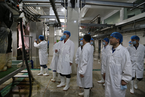 调研组在宏平肉业屠宰车间进行检查