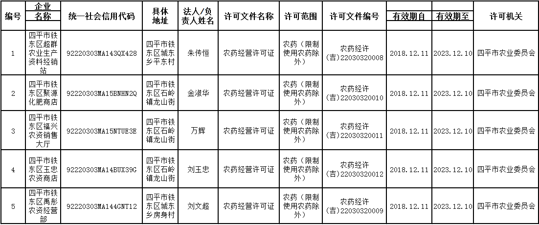 四平市农业委员会12月份行政许可公示(1)